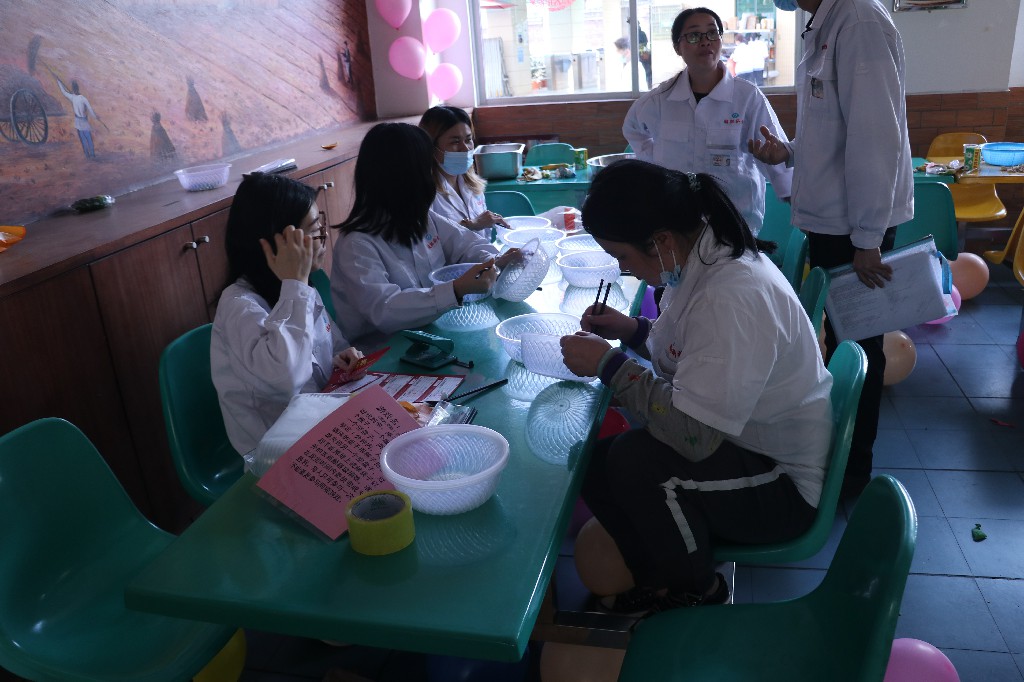 为和谐企业文化,彰显人文关怀,让公司全体女同胞轻松、快乐地度过一年一度的“3.8妇女节”,我司开展了游园活动和检包技能大赛01.上班清晨,骏驰员工男同事们给女同事们在公司派送花朵02.检包车间内,为体现对女性辛勤劳动的关怀,举办了检包技能大赛,员工们秉持着友谊第一,公正比赛的态度中,在比赛中脱颖而出,最终获得了优胜-员工们和各层领导合影03.举办游园活动,女员工们沉浸在欢乐的氛围当中