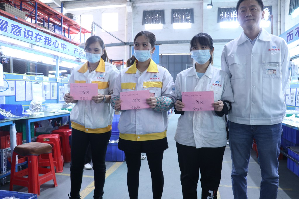 为和谐企业文化,彰显人文关怀,让公司全体女同胞轻松、快乐地度过一年一度的“3.8妇女节”,我司开展了游园活动和检包技能大赛01.上班清晨,骏驰员工男同事们给女同事们在公司派送花朵02.检包车间内,为体现对女性辛勤劳动的关怀,举办了检包技能大赛,员工们秉持着友谊第一,公正比赛的态度中,在比赛中脱颖而出,最终获得了优胜-员工们和各层领导合影03.举办游园活动,女员工们沉浸在欢乐的氛围当中
